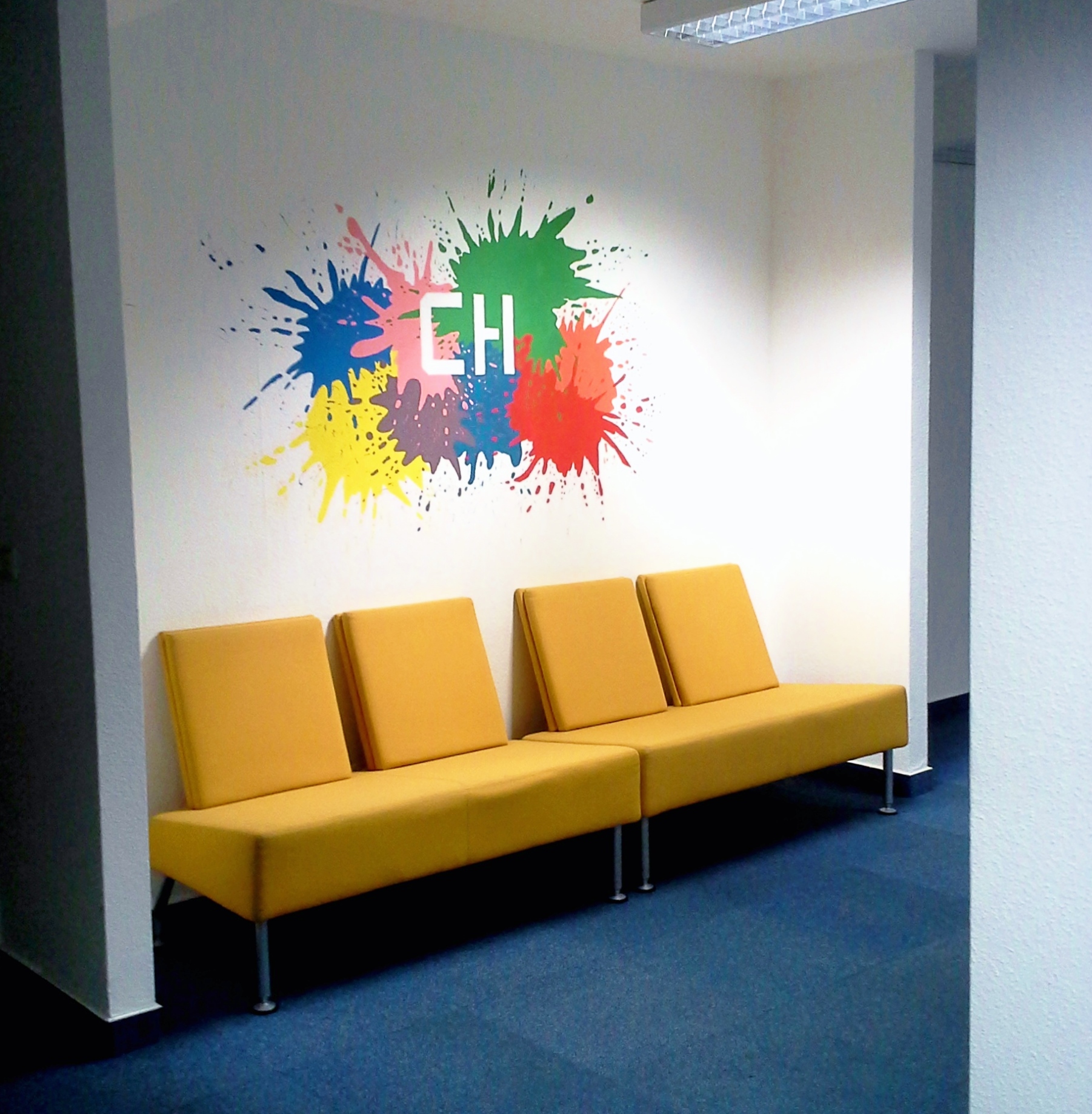 Tym razem wykonaliśmy grafikę ścienną w Clusterhaus, w miejscu oferującym powierzchnie biurowe i wsparcie dla młodych biznesów.
