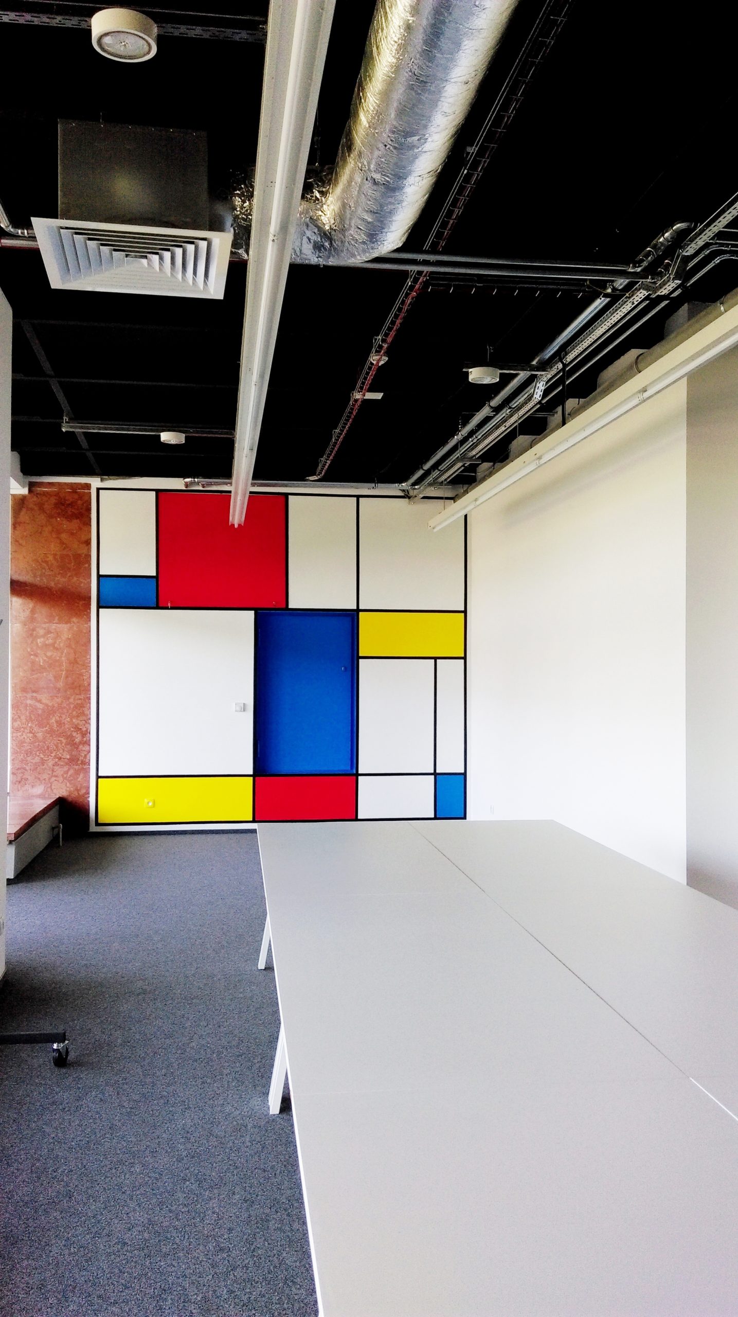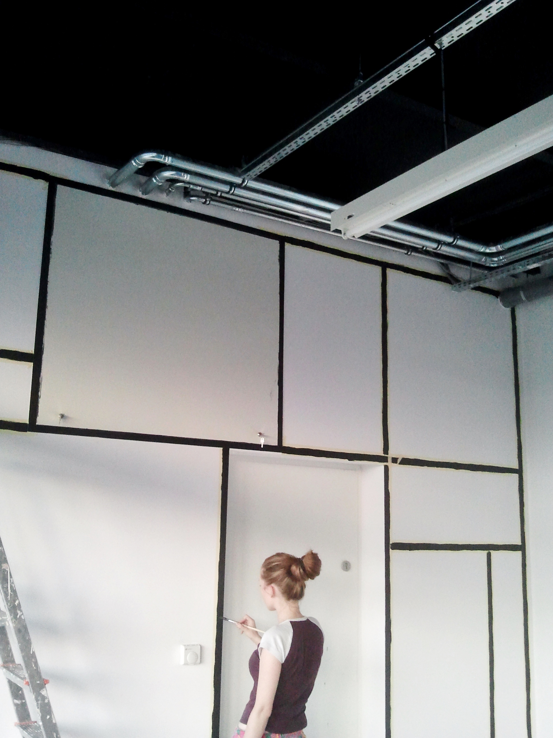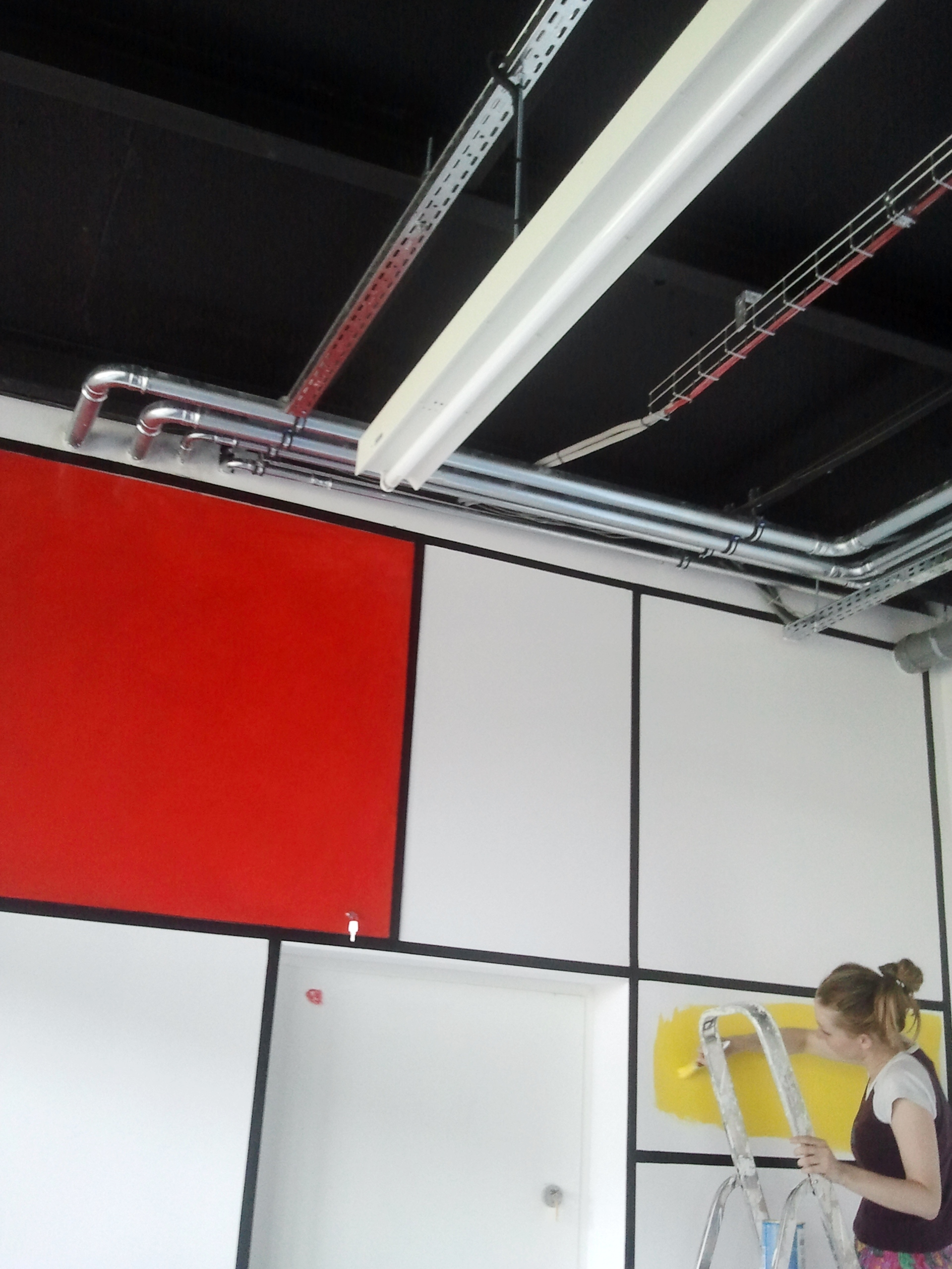 Zostaliśmy poproszeni o zaprojektowanie i namalowanie grafiki ściennej a’la Mondrian w akademiku Student Depot w Poznaniu. Nasza twórczość nie miała granic, ale finalnie przesłaliśmy 9 wersji naszych pomysłów. Możesz je zobaczyć na końcu tej galerii. Samo malowanie zajęło naszej artystce, Marcie Borsodi, aż 5 dni.