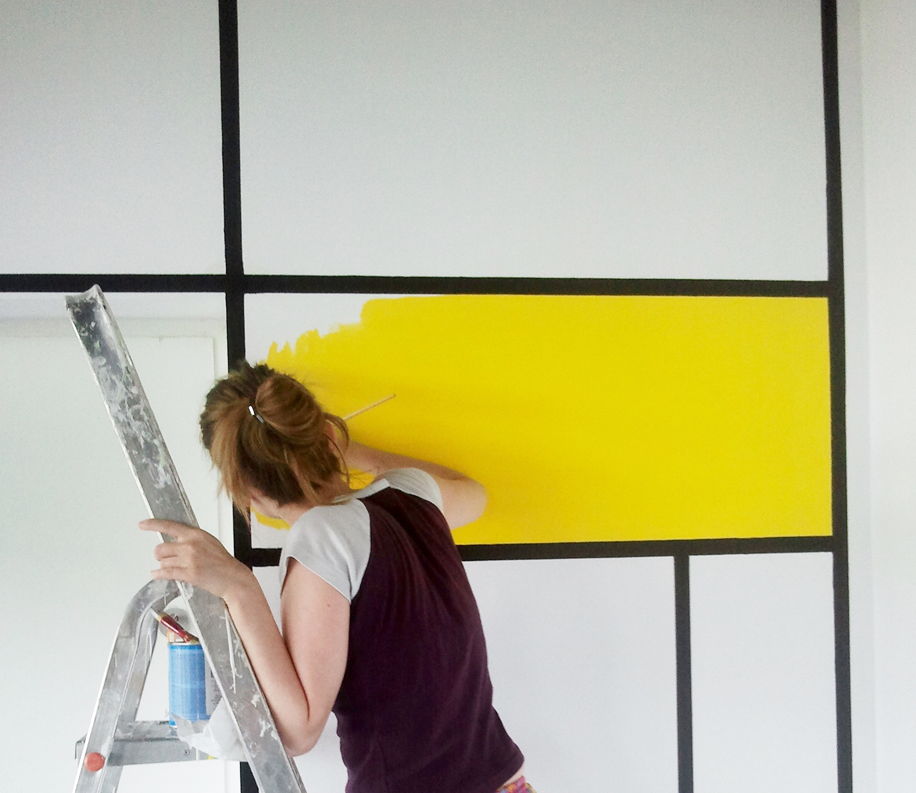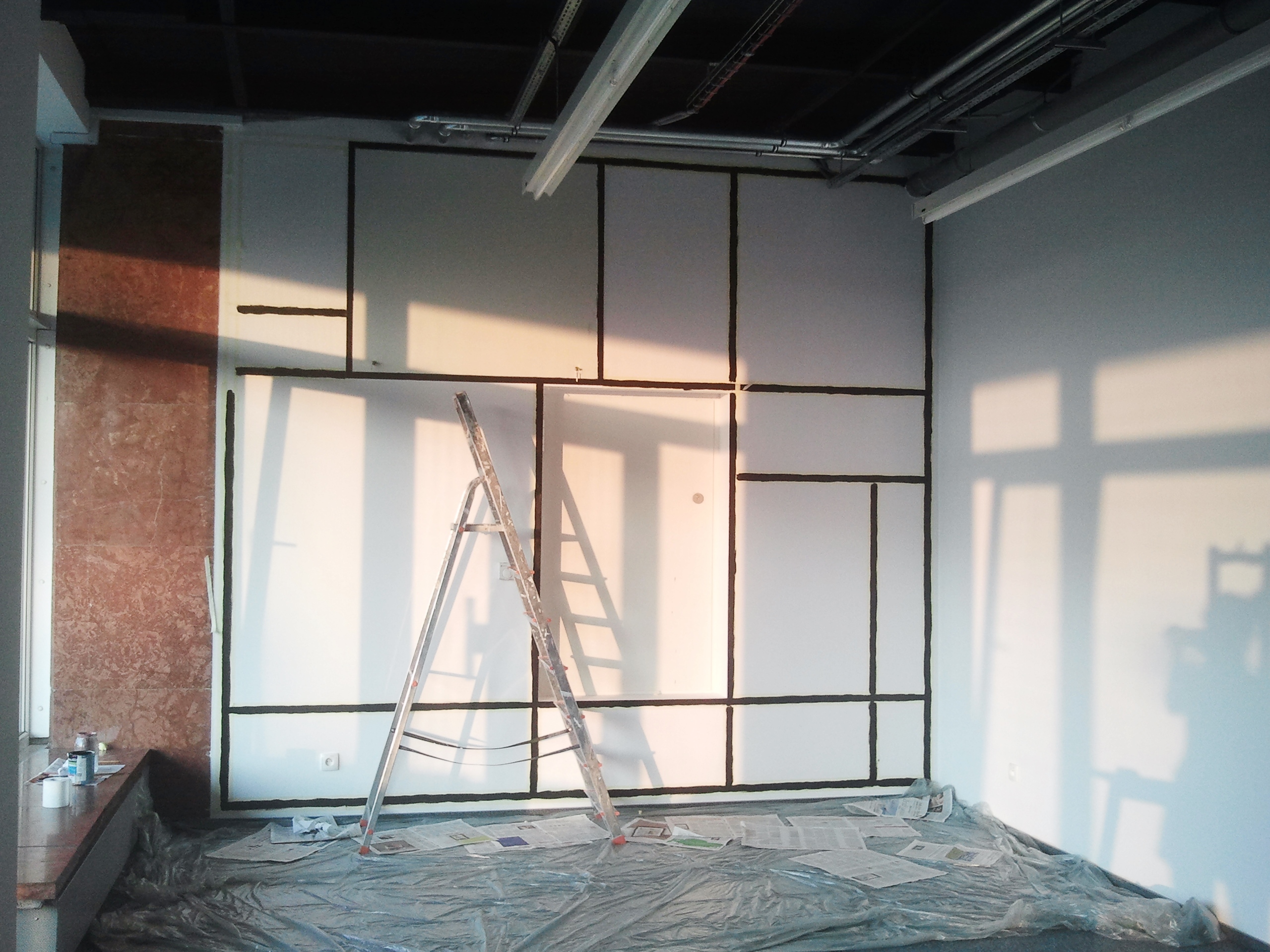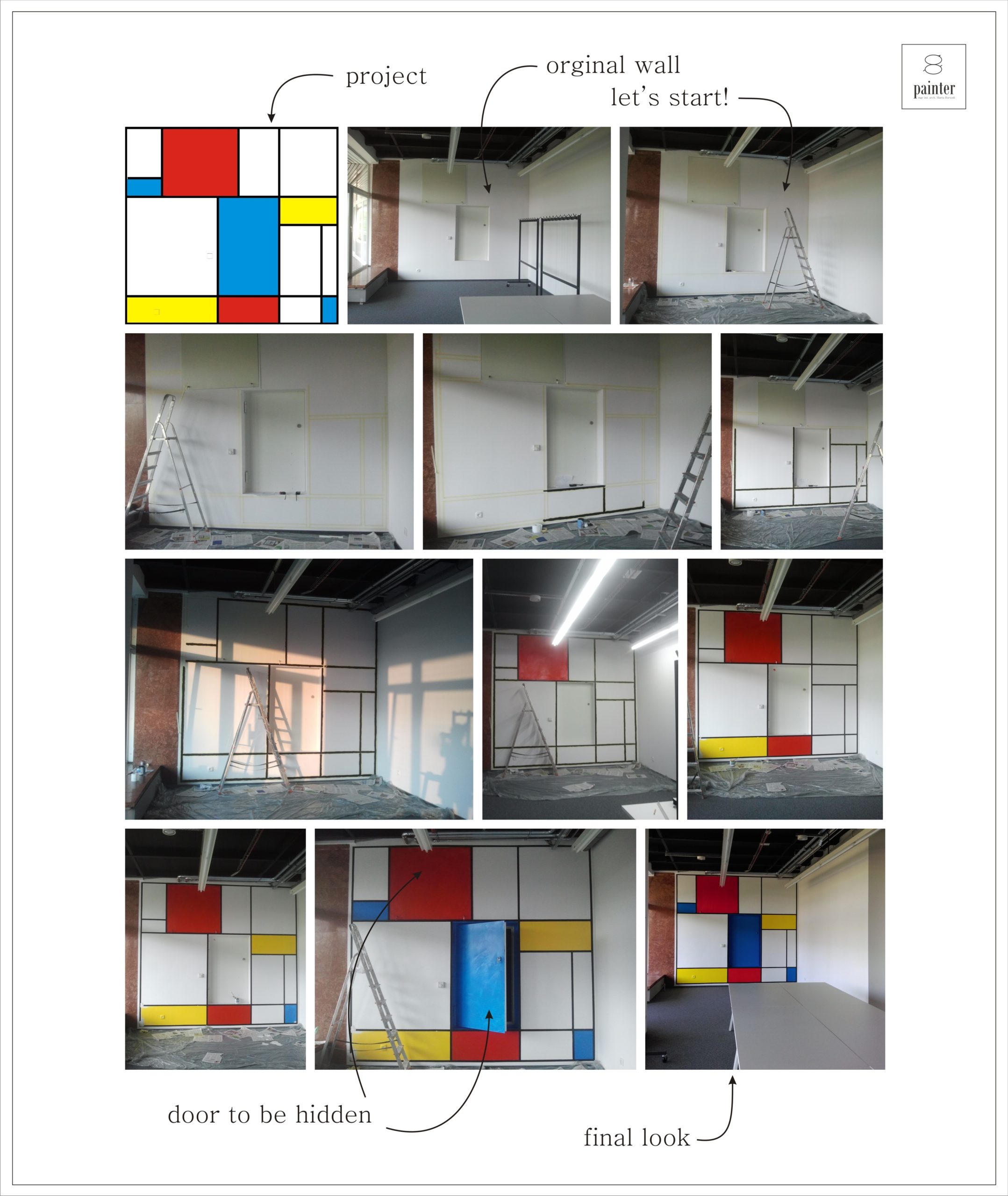 Zostaliśmy poproszeni o zaprojektowanie i namalowanie grafiki ściennej a’la Mondrian w akademiku Student Depot w Poznaniu. Nasza twórczość nie miała granic, ale finalnie przesłaliśmy 9 wersji naszych pomysłów. Możesz je zobaczyć na końcu tej galerii. Samo malowanie zajęło naszej artystce, Marcie Borsodi, aż 5 dni.