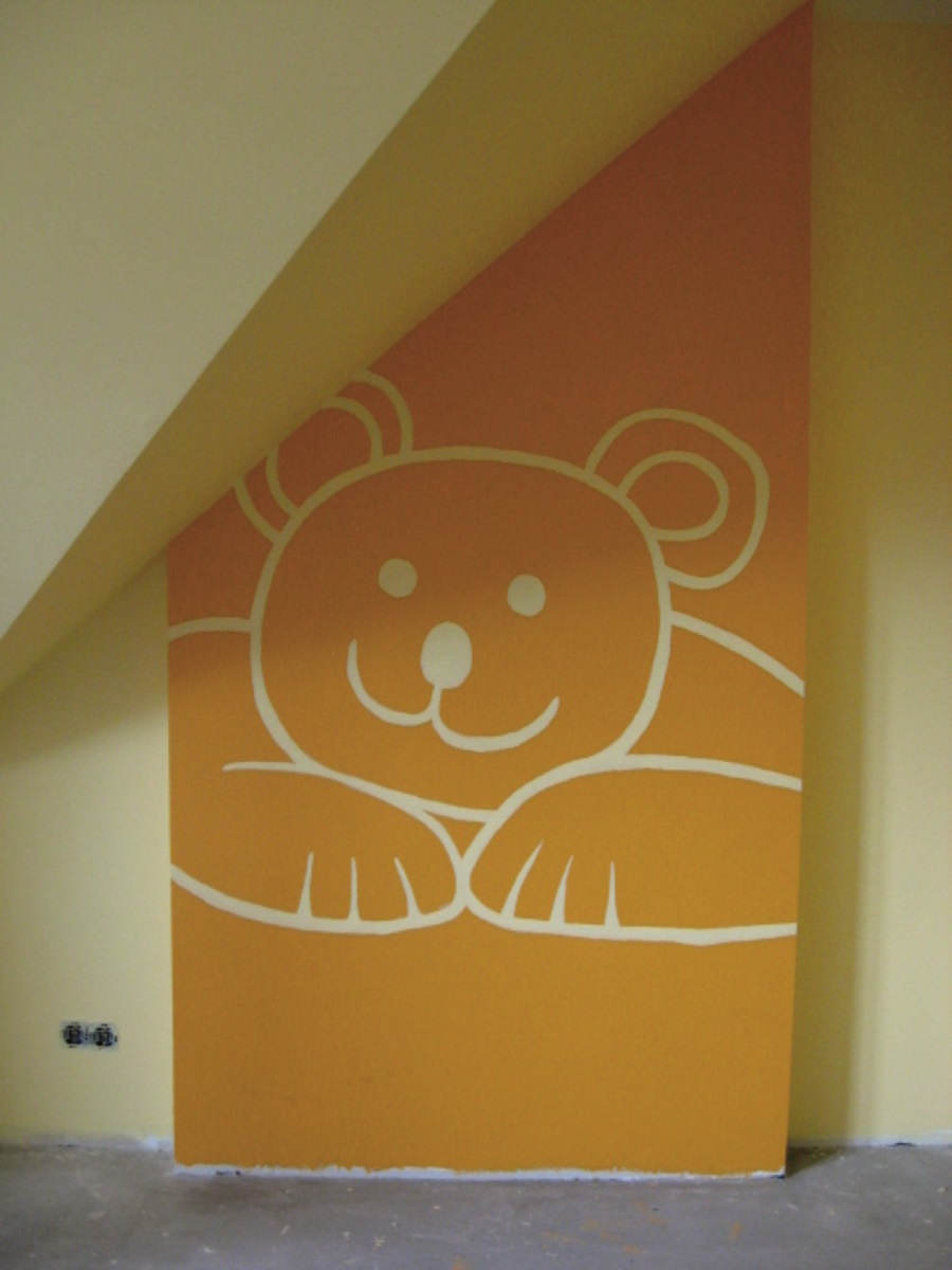 To jest grafika ścienna przedstawiająca „Misia” techniką “2D”.