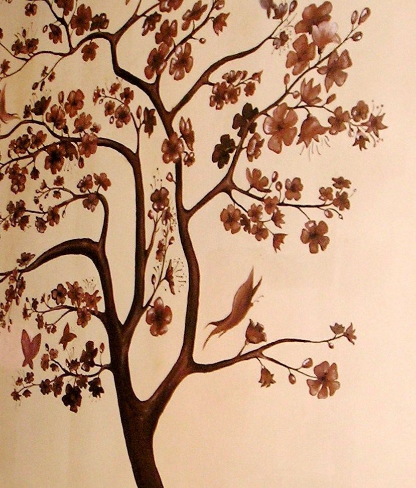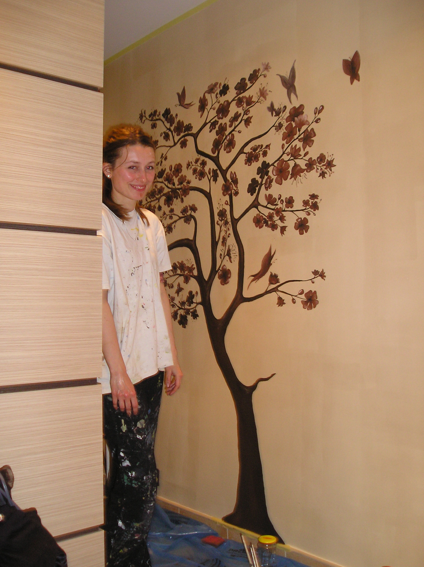 This is our “3D type” of wall painting. We painted brown tree with butterflies, Do you like it?