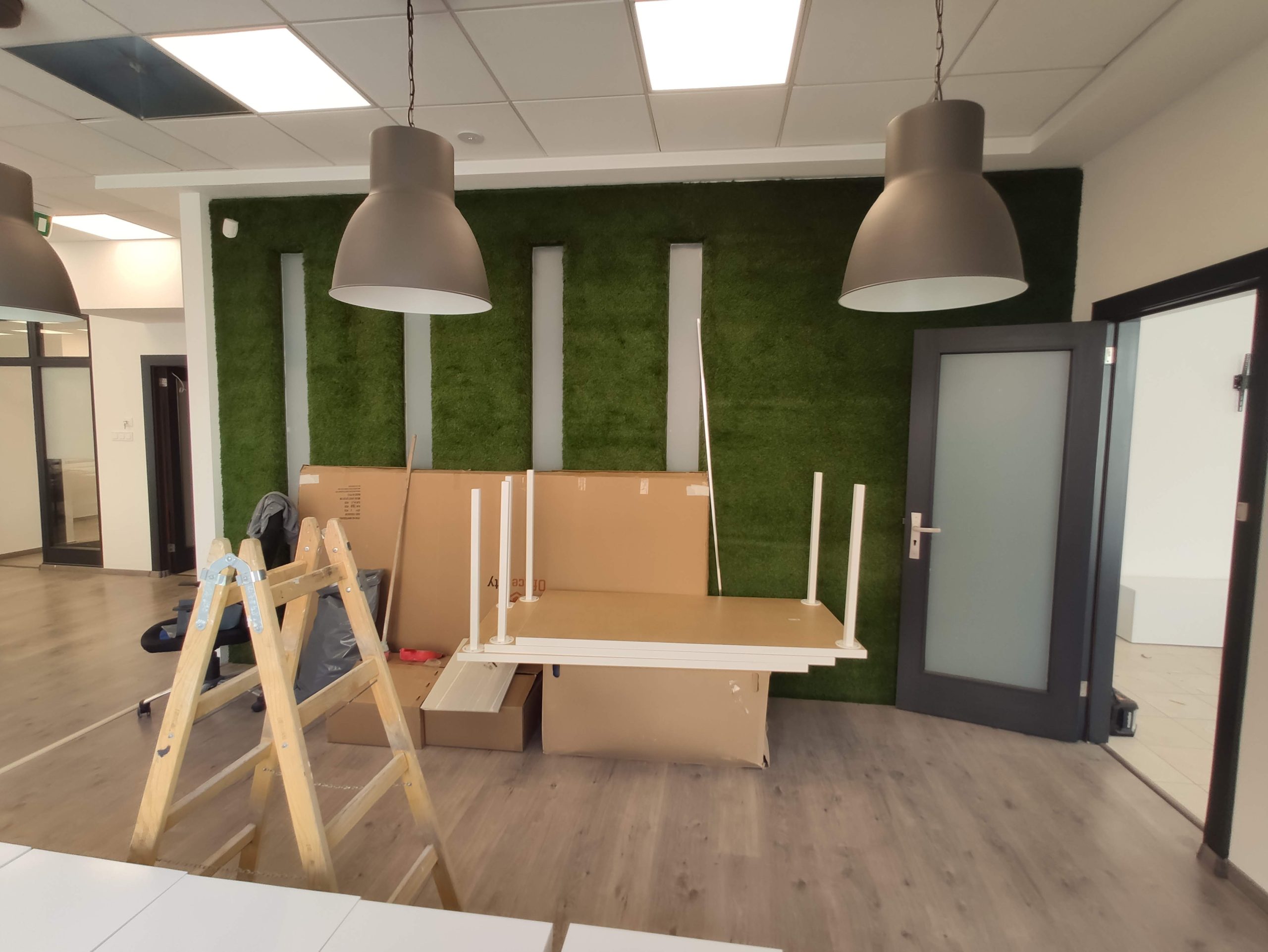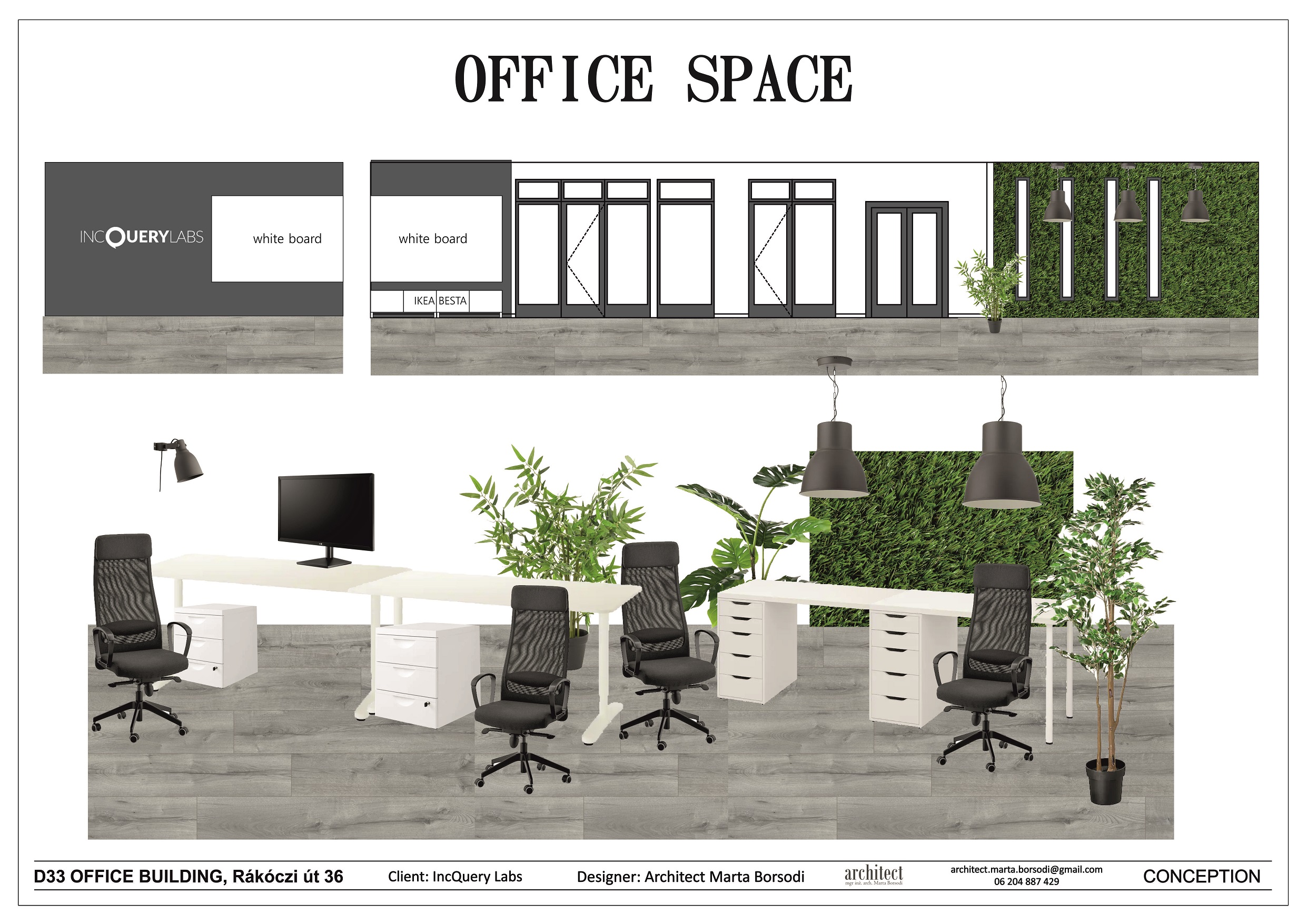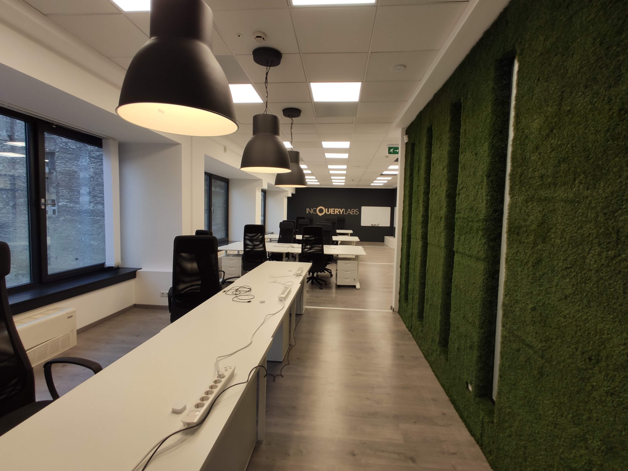 This is next interior design project of ours, where we designed second office for IncQuery Labs. We proposed new functional plan but keeping existing wall structure of the office. We developed electrical and ceiling layout with LED and hanging lamps, we have chosen furniture, decoration and gave idea how to refurbish original kitchen furniture by changing top and fronts. This amazing place has 180 m2. 🙂