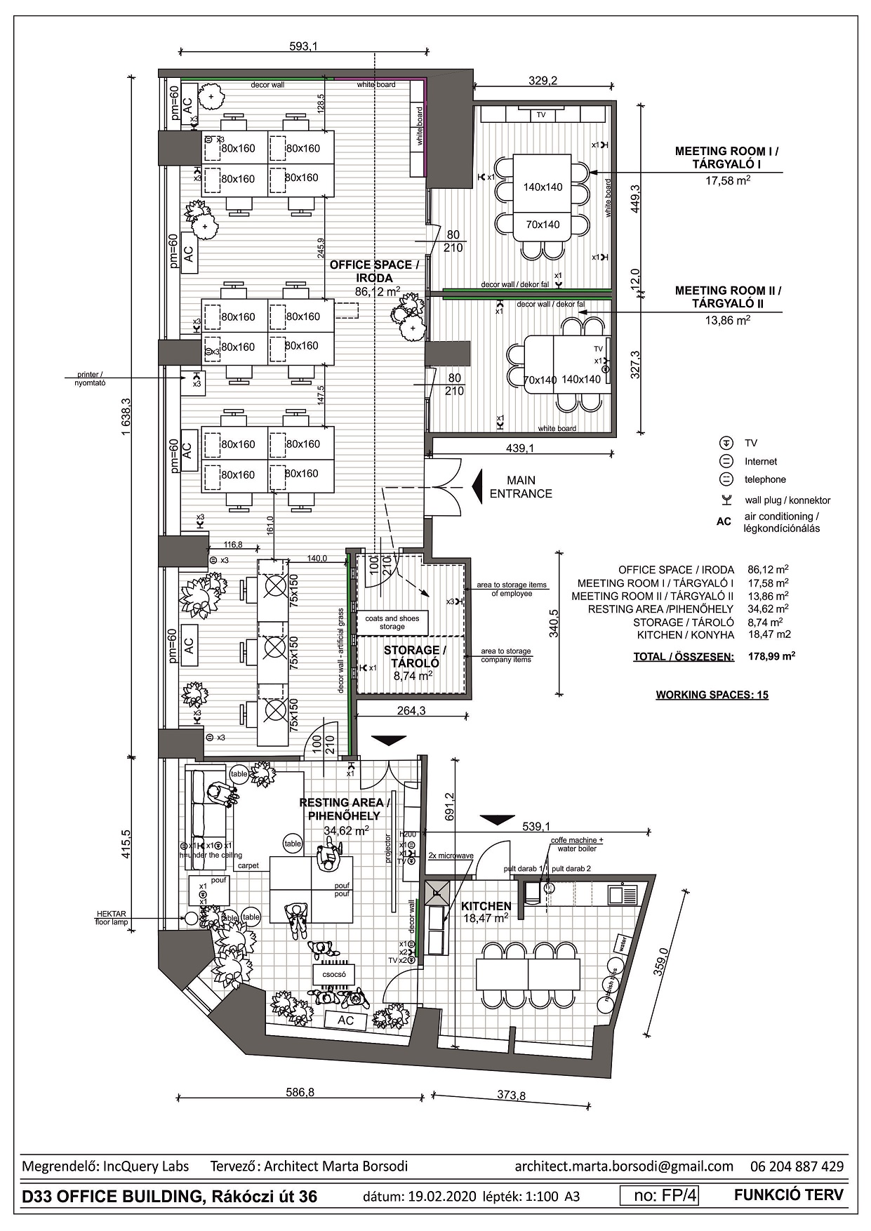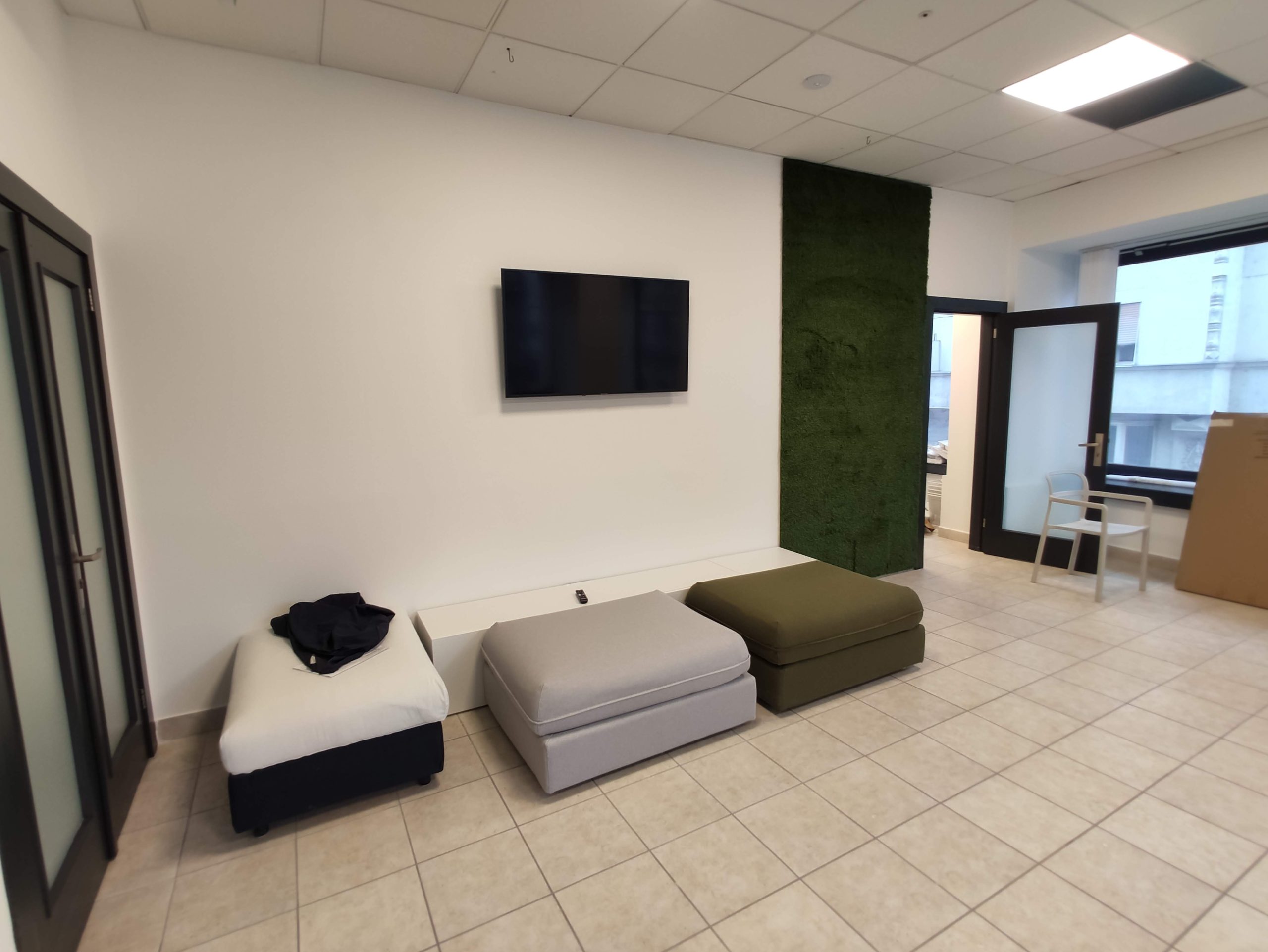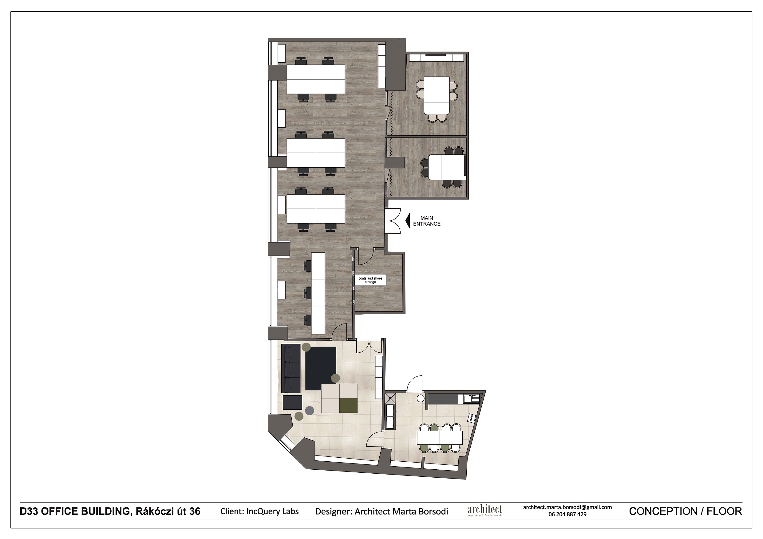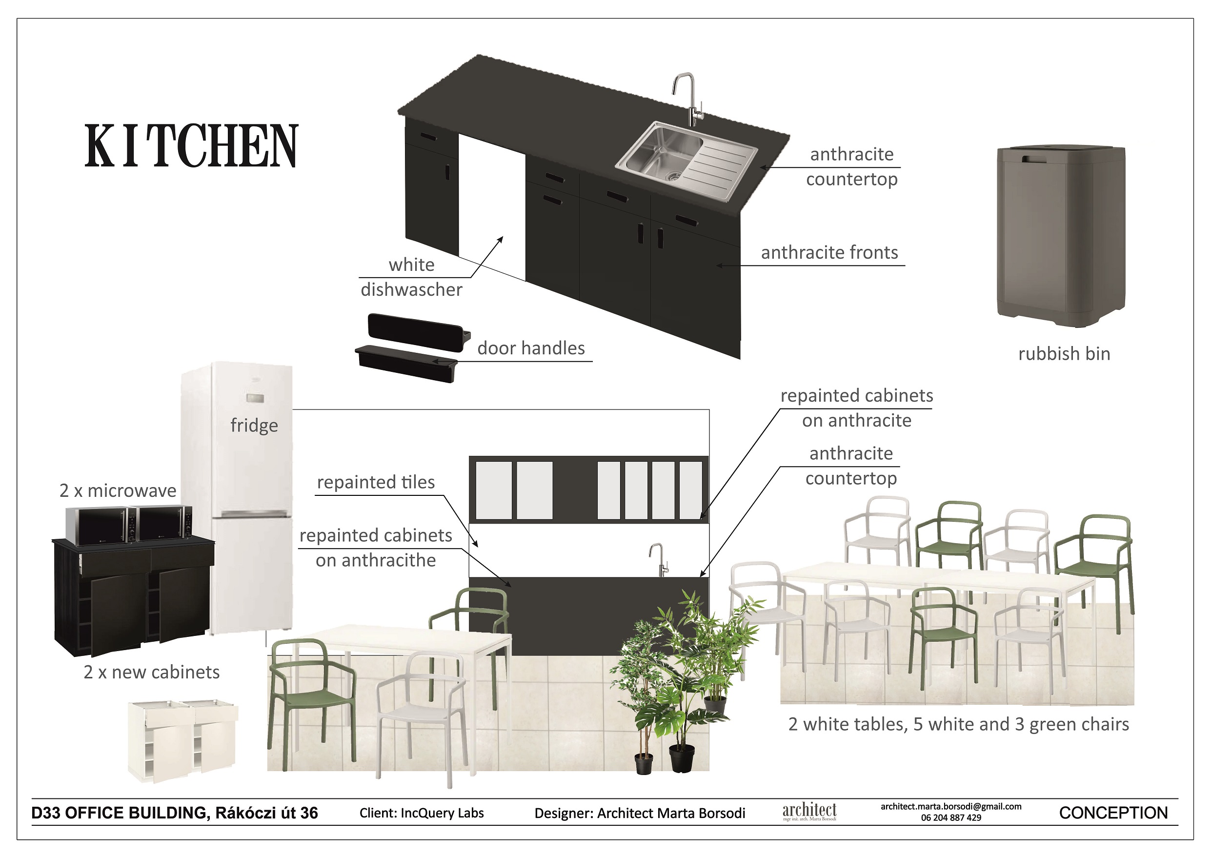 This is next interior design project of ours, where we designed second office for IncQuery Labs. We proposed new functional plan but keeping existing wall structure of the office. We developed electrical and ceiling layout with LED and hanging lamps, we have chosen furniture, decoration and gave idea how to refurbish original kitchen furniture by changing top and fronts. This amazing place has 180 m2. 🙂