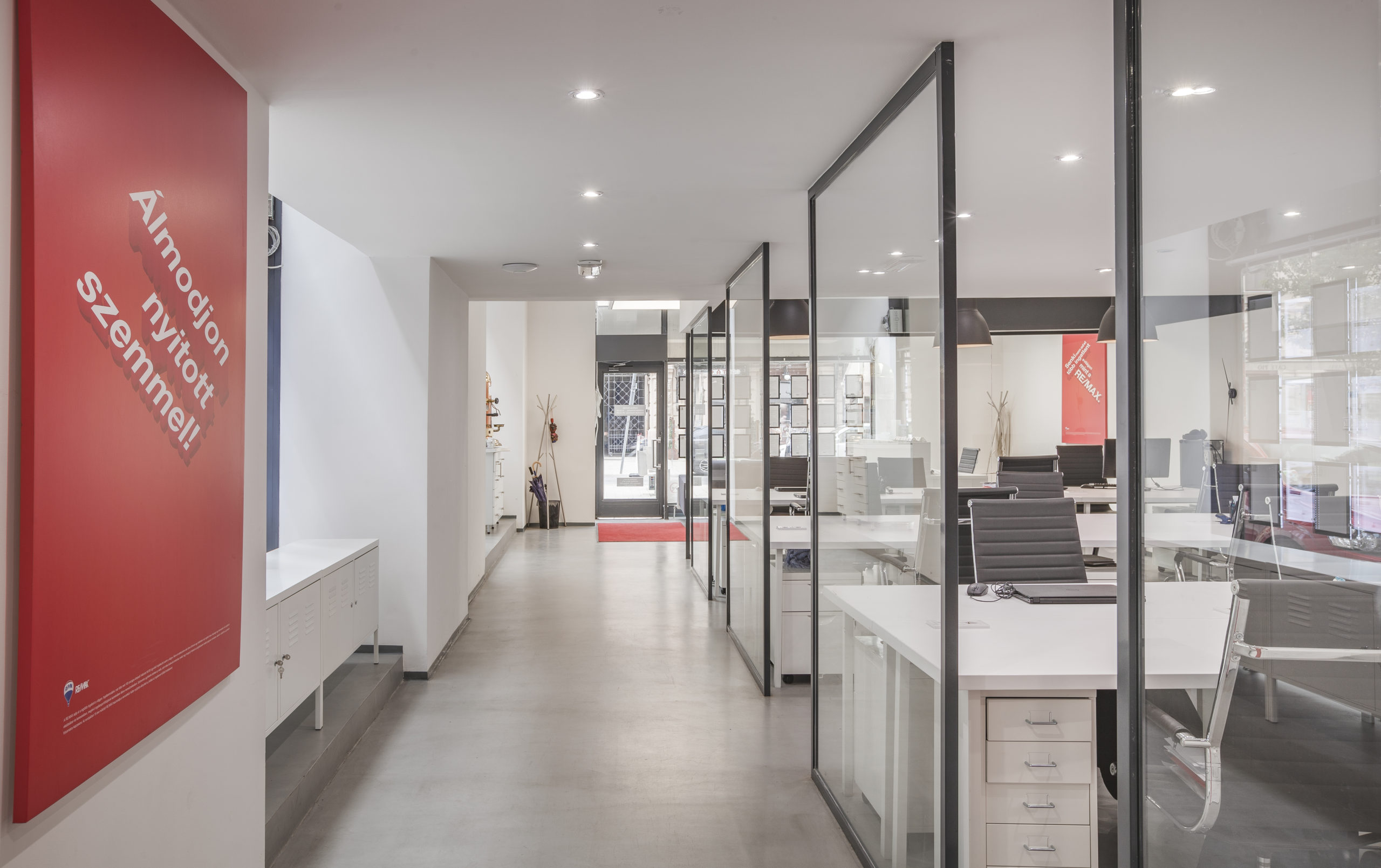 RE/MAX is real estate World wide company. We made design for their main office at Ferenciek tere in Budapest. This was our “100% of interior design” type where we designed new functional plan, we demolished and build walls, we designed interiors and took part in finishings. Of course we have chosen walls and floor coverings, furniture and decoration. We cooperated with renovation team and shops due to material orders and at the end we made professional photo-session.