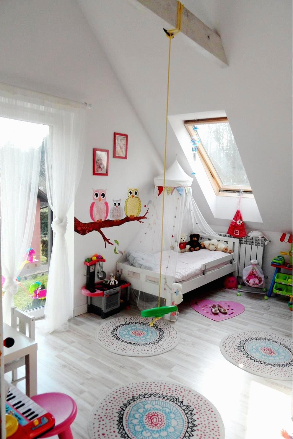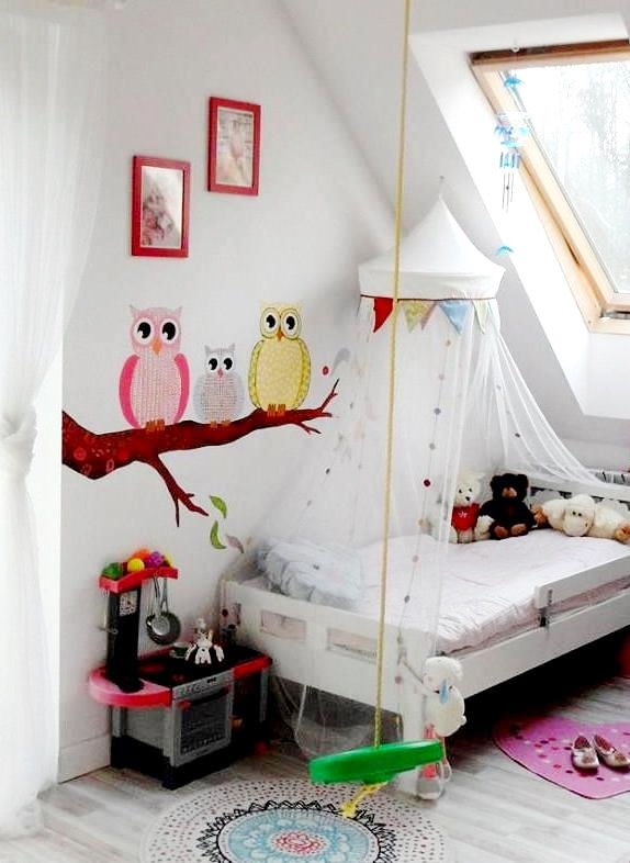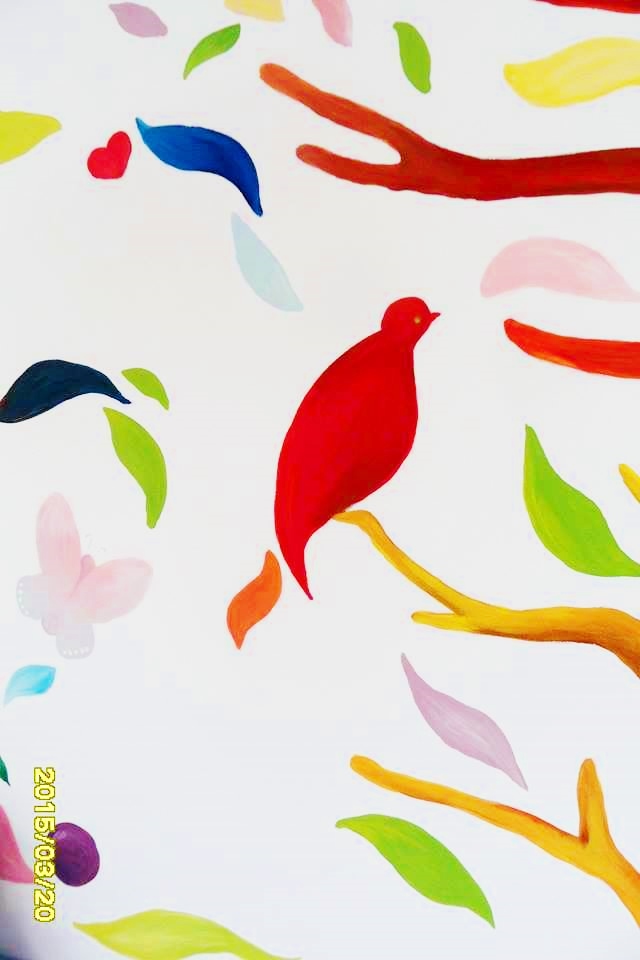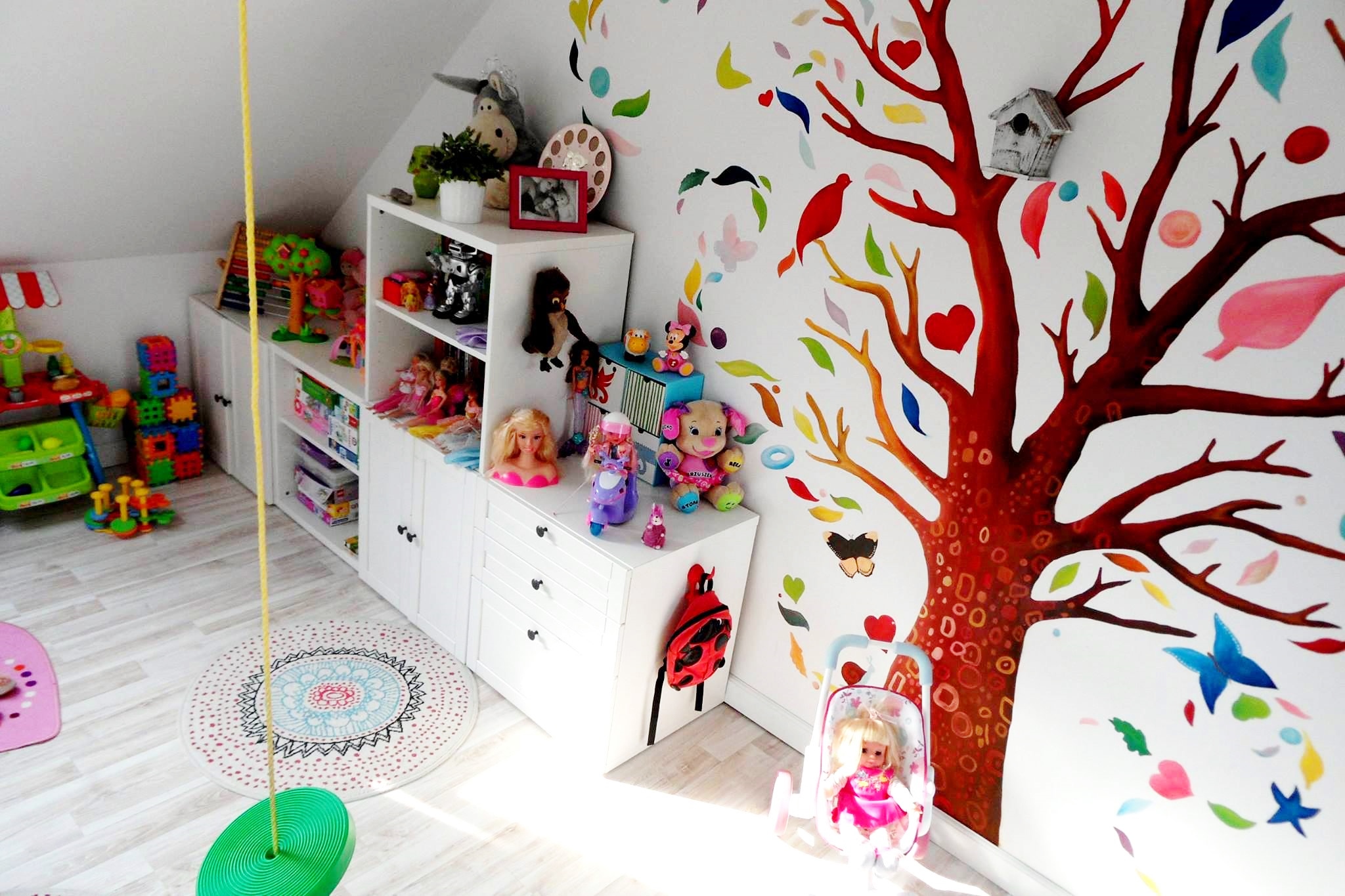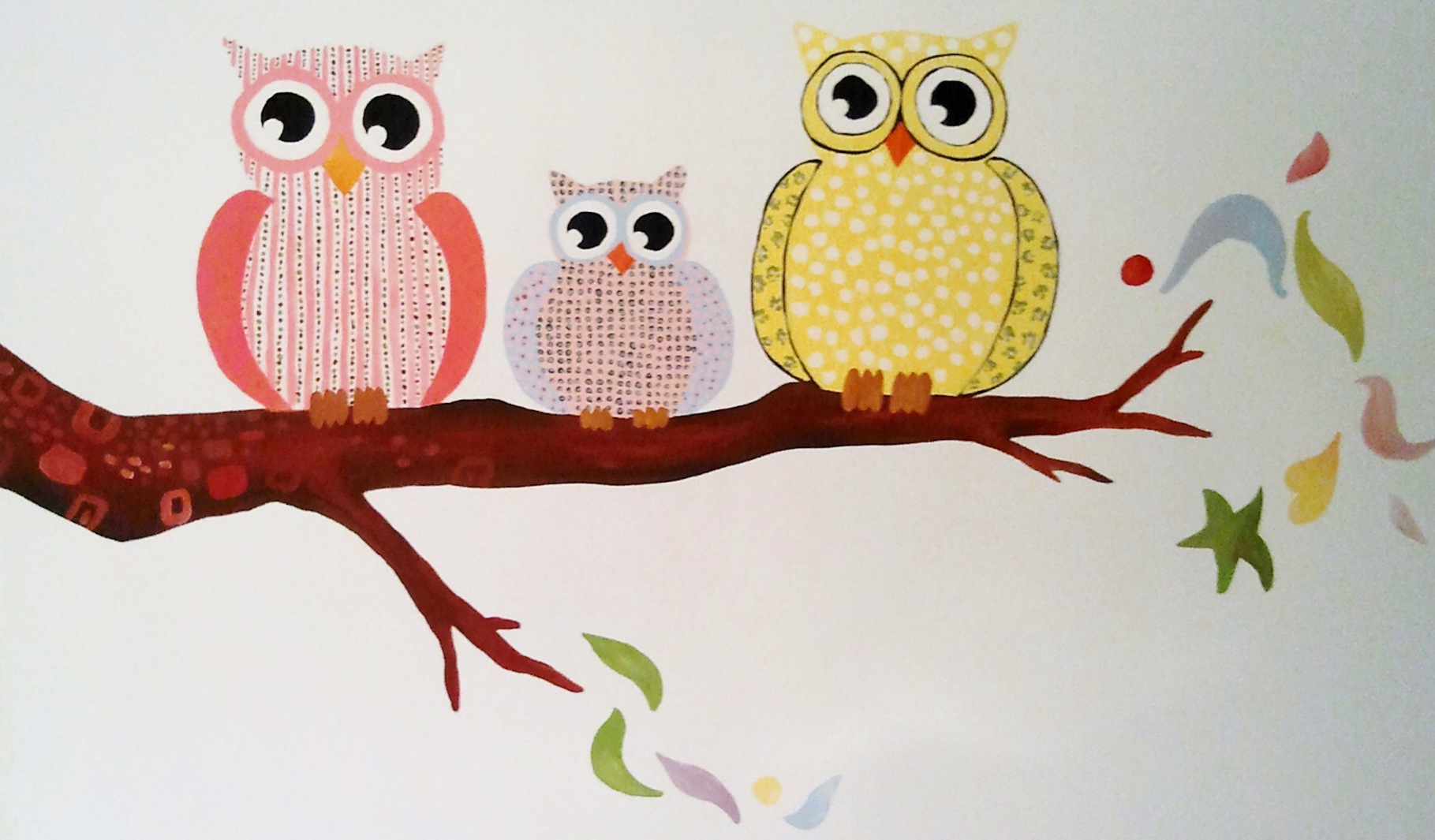 Our Artist, Marta Borsodi, painted this beautiful tree on the wall for little Ola. The tree is full of colors, figures, leaves. On the second wall Marta painted one branch with three owls.The painting took around 36 working hours.