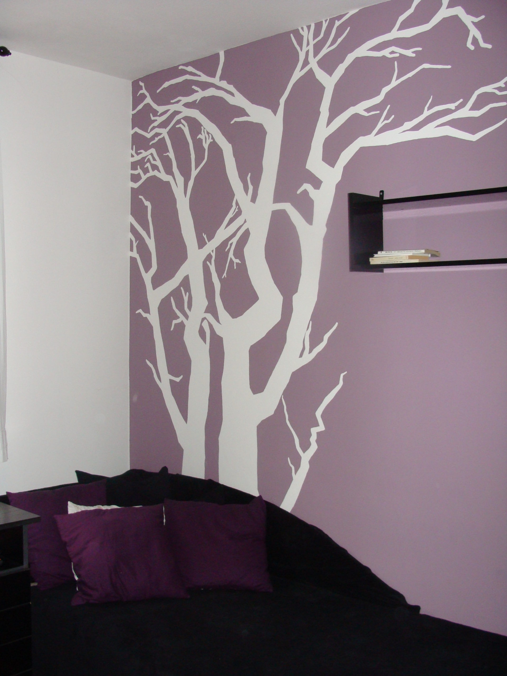 Tree is very famous subject for wall graphics. As well here we did one painting like that, white tree created on violet wall.